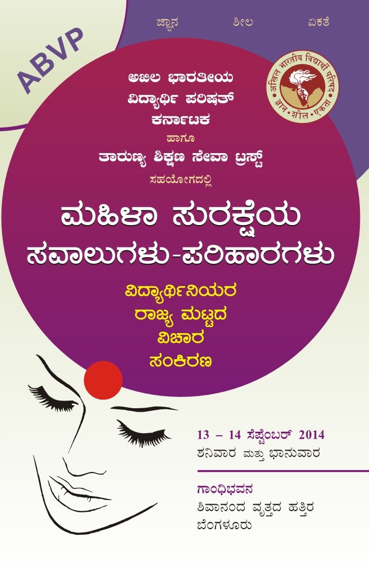 We are elated to announce that we are hosting a State level seminar on Women safety, titled, ' Women safety- Challenges and the road ahead'. The Seminar would be attended by girl students from every district of the state.The Seminar will be inaugurated by His excellency, the Governor of Karnataka, V.R. Vala. The chief guest will be Smt. Sudha Rao, Retired Vice Chancellor of Karnataka Open University, Mysore. The Seminar will be presided over by Smt. N. Shantakumari, Respected Mayor, Bangalore. The Opening address will be delivered by Dr. B.V. Vasanthkumar, State Vice-President, ABVP Karnataka.